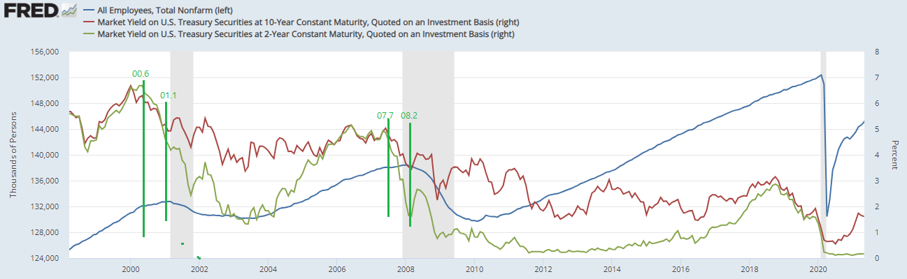 고용감소가 시작하면 시장금리도 하락하는 것을 볼 수 있습니다.