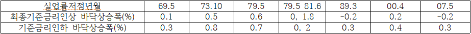 물론 먼저 고용감소가 나타나기는 했지만 꼭 고용때문에 금리인하를 했다고는 할 수는 없을 것 같습니다.