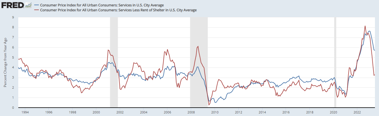 올해 1월인것 같은데 물가가 하락하며 시장이 환호하자 파월이 주거비 물가는 어차피 내려올거고 주거비를 제외한 근원 서비스 물가를 본다고 하였습니다.