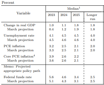 2023년 실업률은 3월 fomc에서 4.5%로 전망했는데 6월 fomc에서는 4.1%로 전망하였습니다.