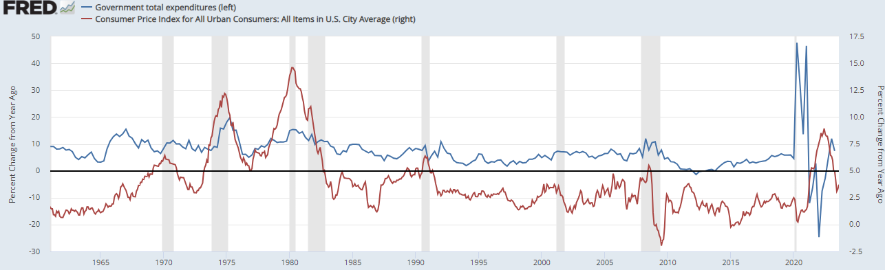 인플레이션이 와도 정부지출 전년동월비 10%밑에서는 약한 인플레이션으로 선방하였습니다.