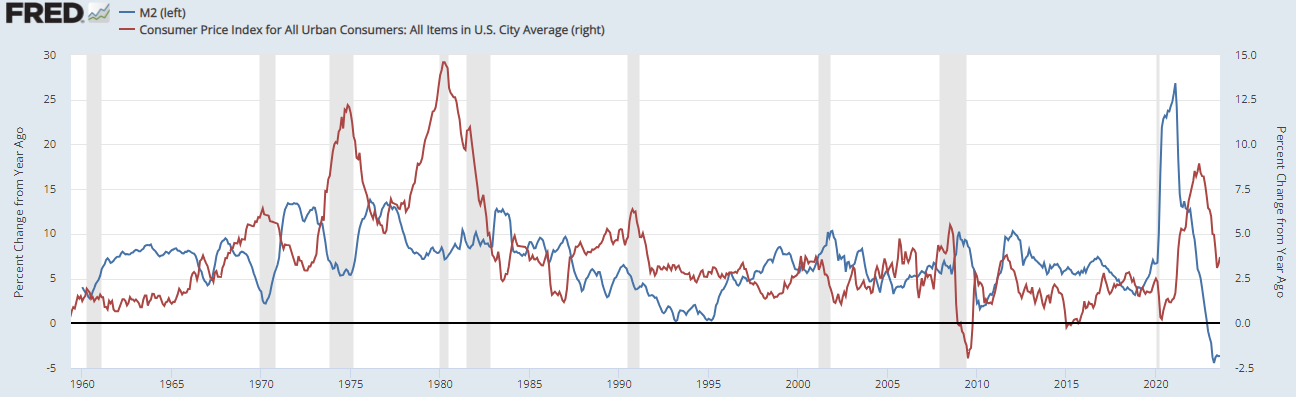 지금은 M2 전년동월비가 60년만에 마이너스로 가서 물가안정을 지나 경기침체가 올거란 애기가 있습니다.