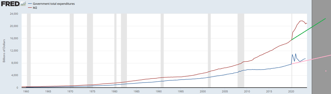 그리고 강한 인플레이션은 정부지출과 광의통화(M2)와 관련이 많습니다.