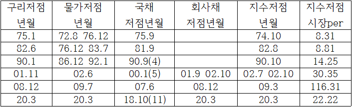 책 베어마켓(2005년 저)에서 애기하는 지수 저점 파악 글에서