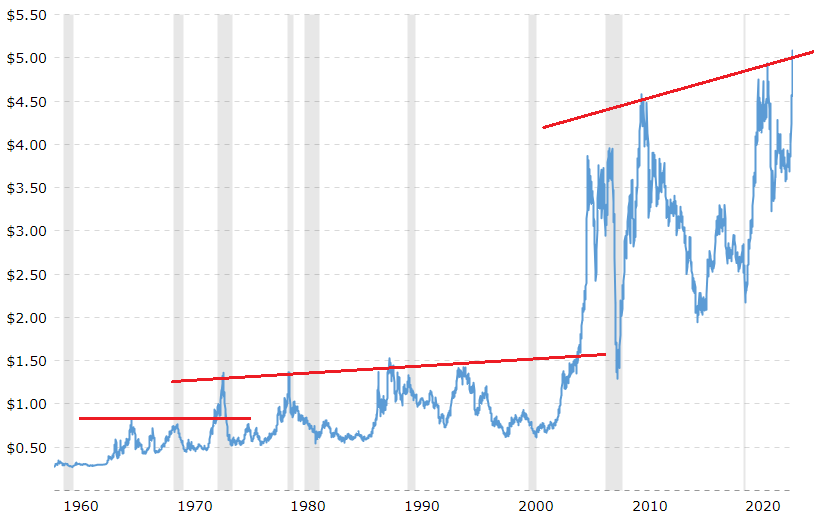 어제 글에도 썼지만 지금까지 물가3%위에서 pmi가 상승할 때는 구리가격은 횡보한 적이 많았습니다.