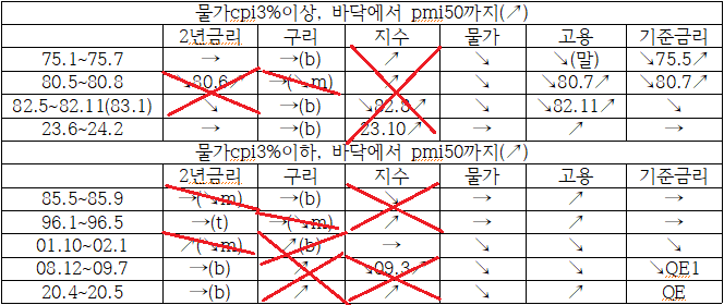 22.11~23.6은 80.7~80.12과 같이 금리인상에도 물가하락으로 지수가 상승했던 때를 연상하게 합니다.