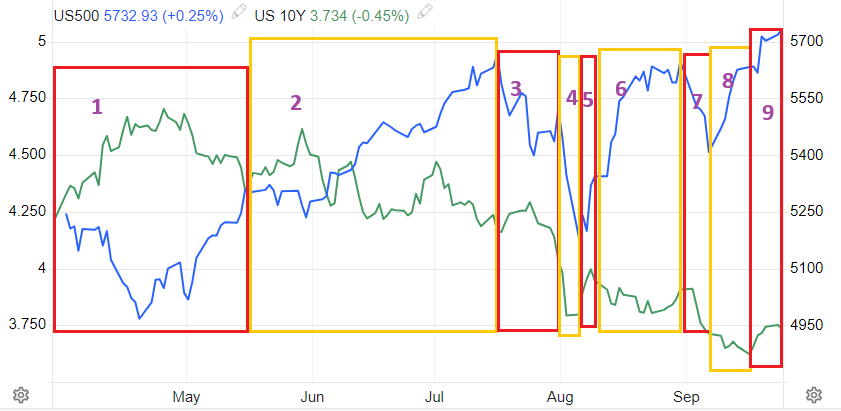 4. 첫 금리인하 돌입: 10년물 금리와 상관없이 지수 상승