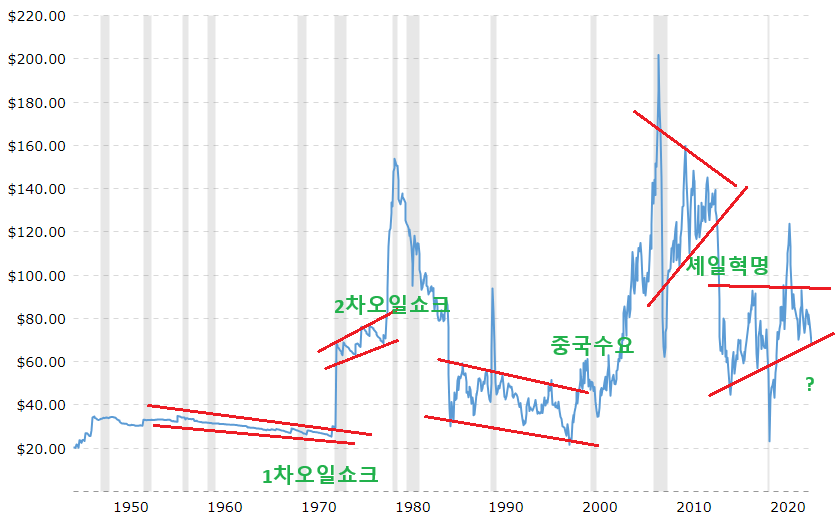 앞으로 수급으로 50~60달러까지 갈거라 애기하는 사람이 많지만 중동에서 확전이 변수입니다.