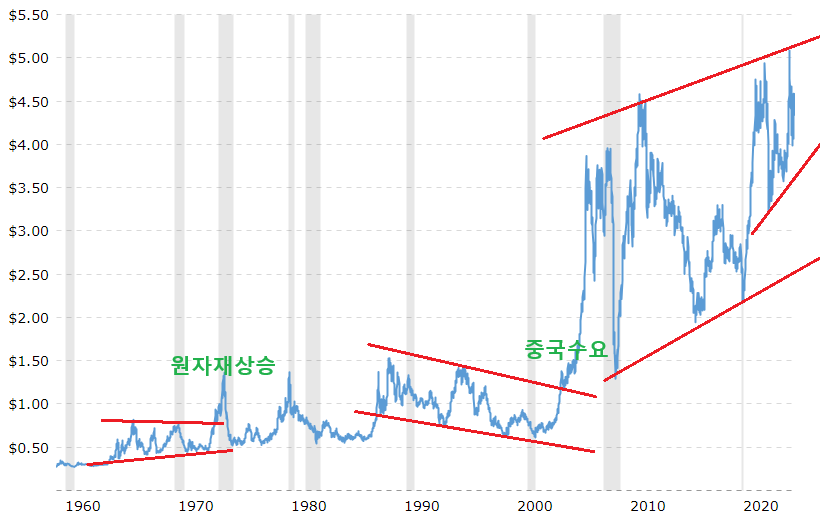구리가격은 당장은 박스권을 뚫고 위로 갈 동력은 없어보입니다.