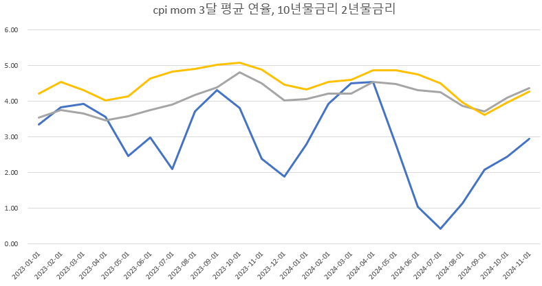| 과거 cpi mom 3달 평균 연율 환산과 10년물금리(월평균) 비교 (1) | 2024.12.22 |