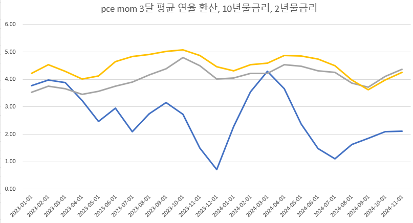 다행히 11월 근원pce물가 mom이 0.11%로 낮게 나왔습니다.