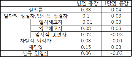 그리고 표 밑에 부분에는 그 달 실업률에서 각 구성 요소에 해당되는 실업률 부분을 적고 있습니다.