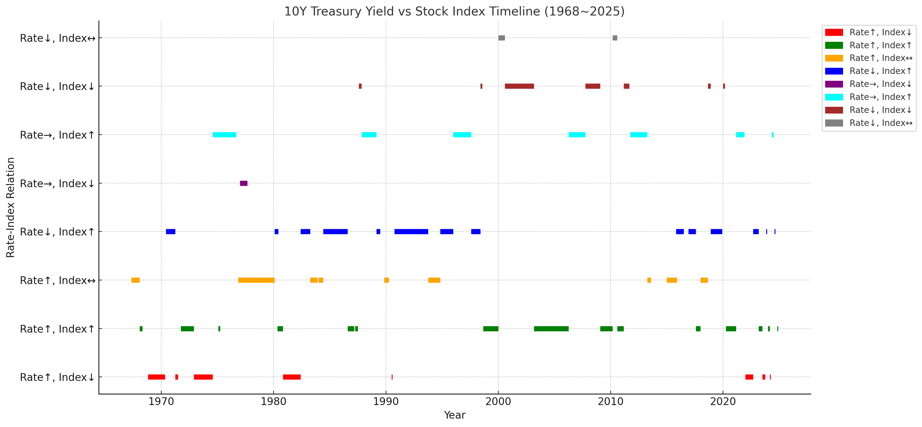 2024년11월에 쓴 '10년물금리와 주가지수 관계 총정리' 란 글을 chatgpt한테 차트로 그려달라고 했습니다.